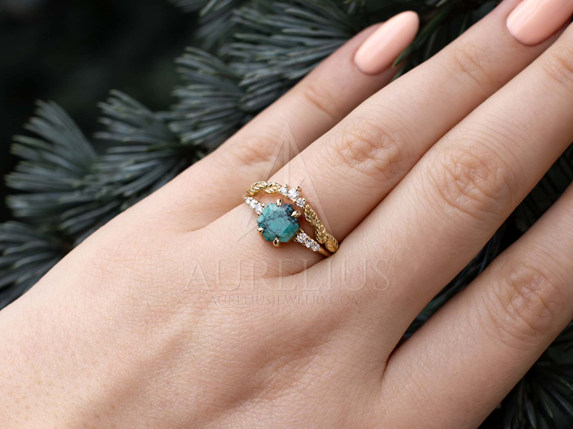I spent months looking for the perfect ring and I’m so happy I found this one! It already comes with a wedding band so that’s a huge plus, too! The small details on the leaves and the overall craftsmanship are exceptional. It’s absolutely perfect and she loves it!