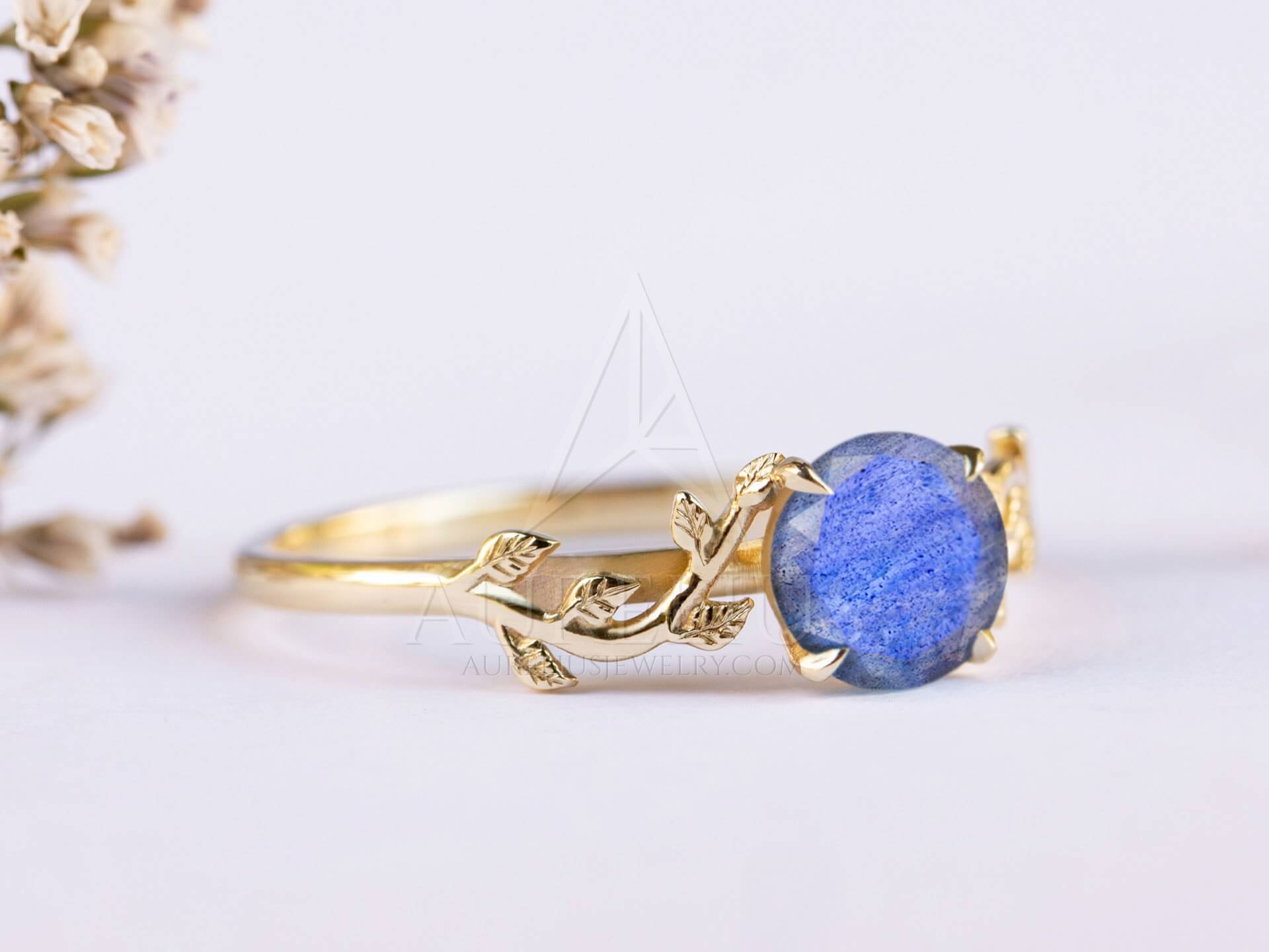 I love my ring. It’s even more stunning in person as the labradorite reflects blue light differendly from every angle.