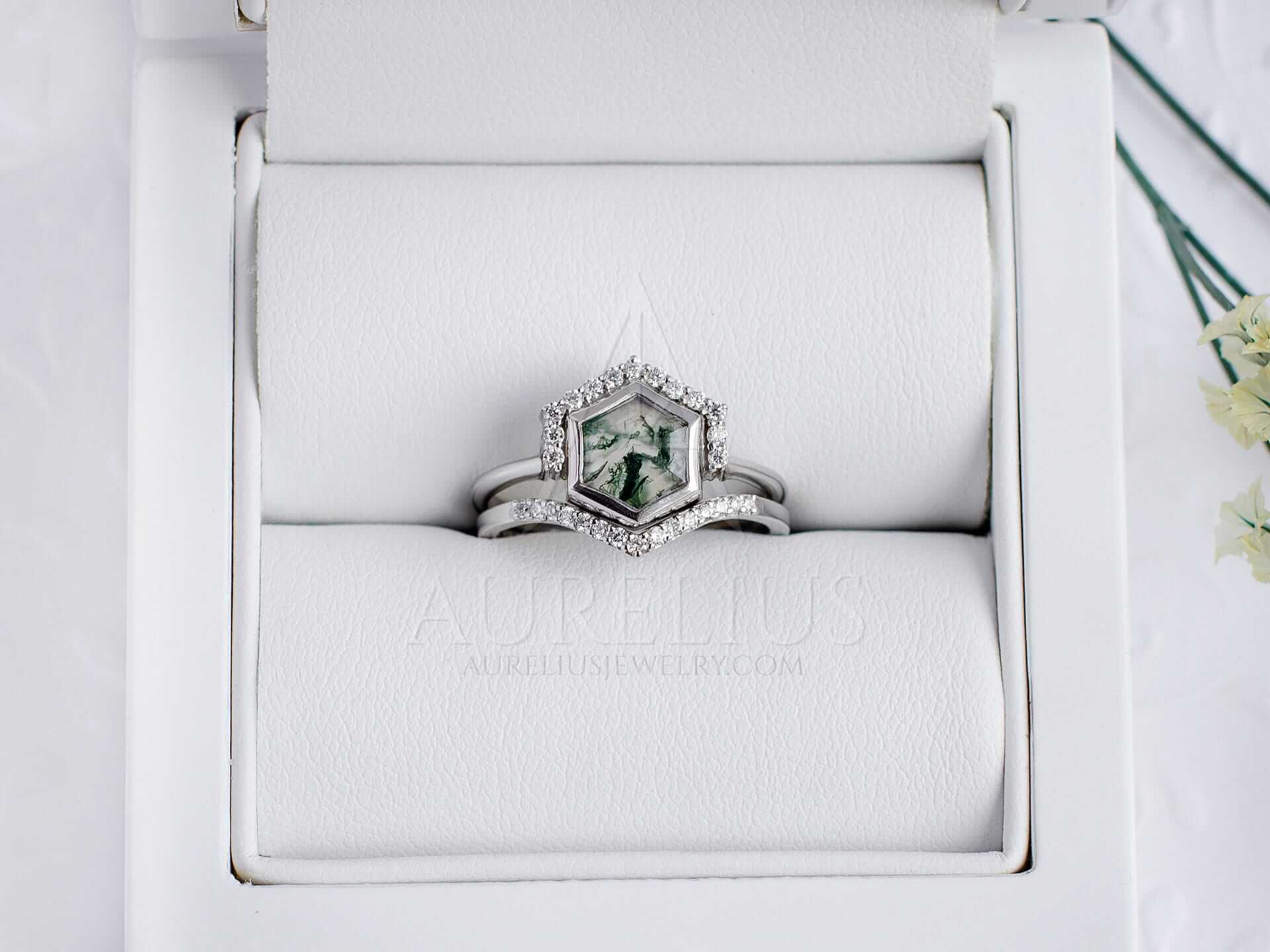 – hexagon moss agate