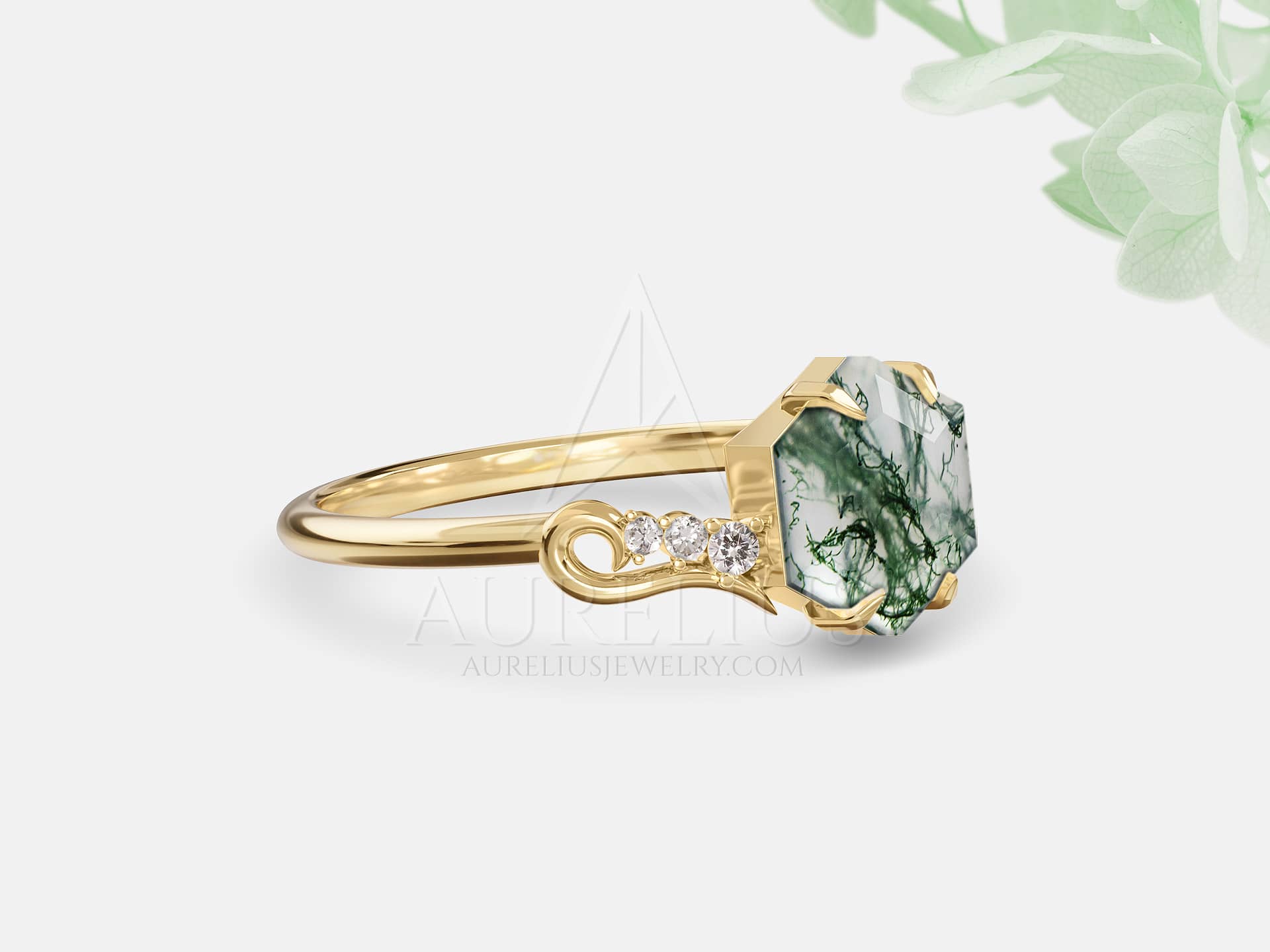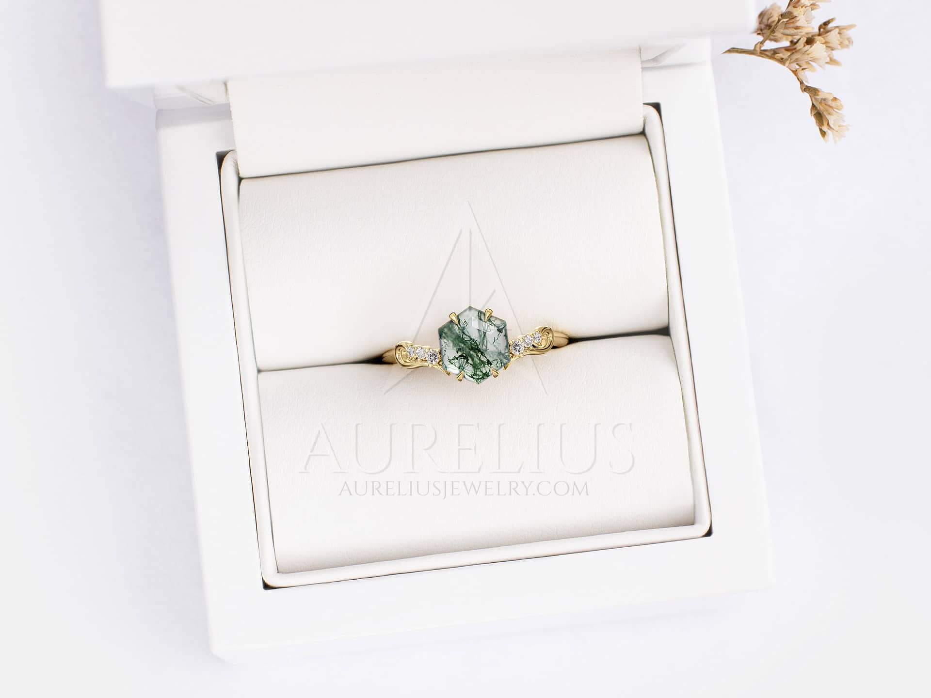 Moss agate is my favorite gemstone, and this ring is so gorgeous with the vine twist around the diamonds.It far exceeded my expectations and I’d recommend this shop to everyone who want a personal touch when buying jewelry.