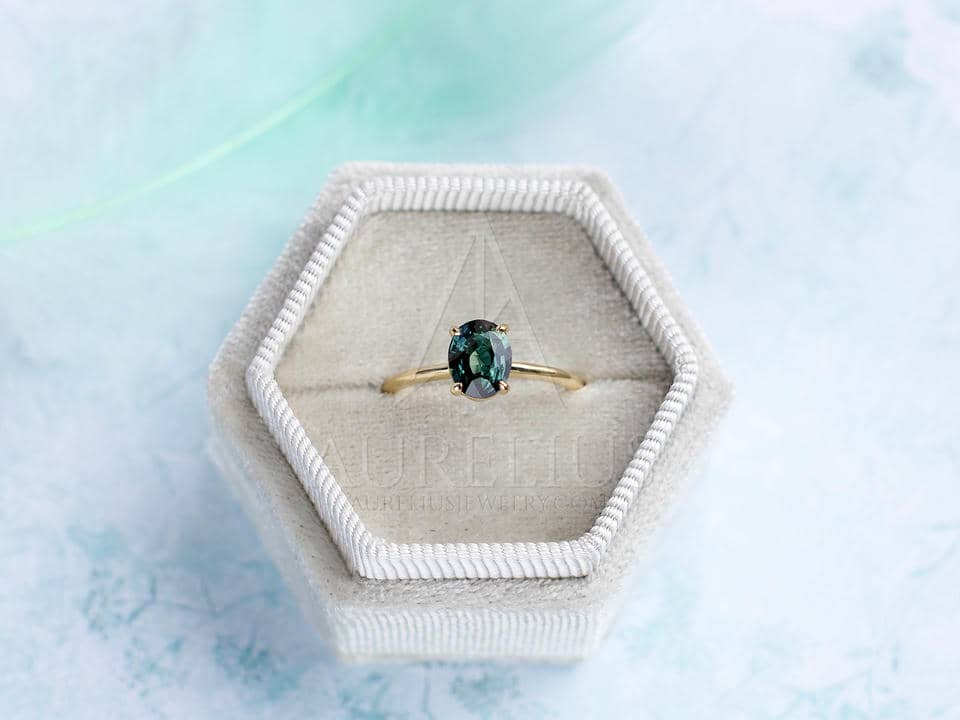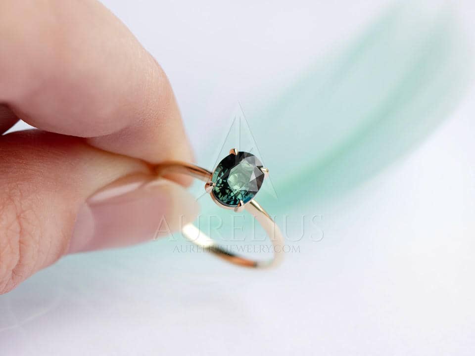 – oval natural teal sapphire