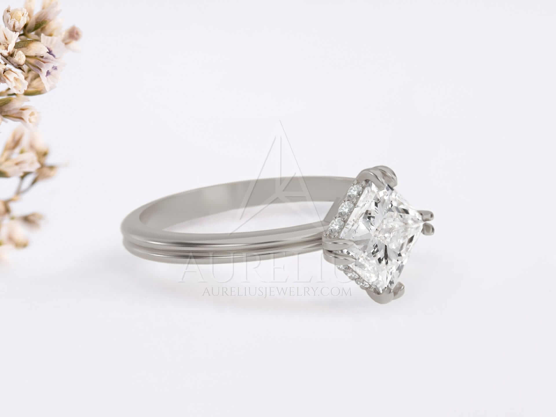 Beautiful moissanite ring! Looks just like a real diamond and the hidden halo is really cute.