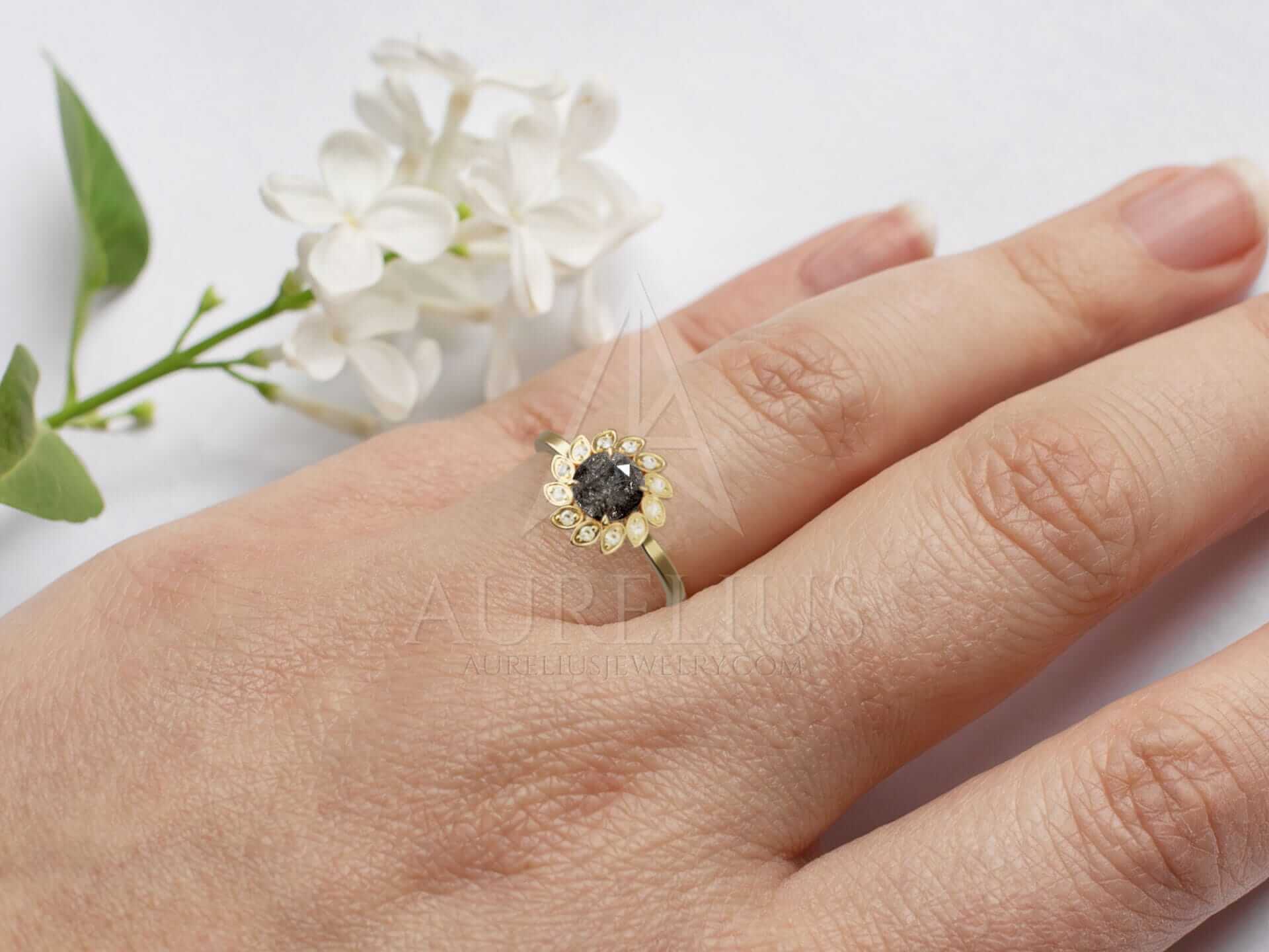 Sunflower Engagement Ring with Halo – Helia
