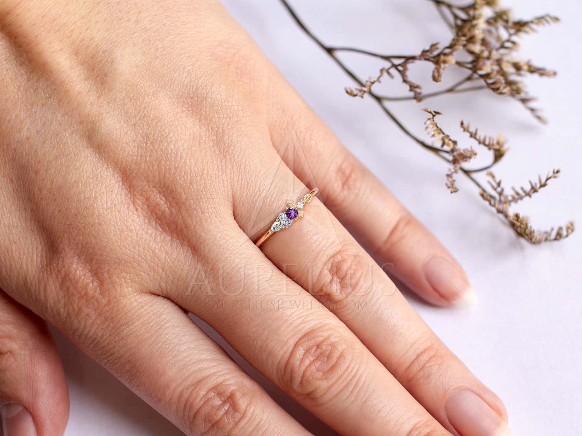 Tiny Floral Engagement Ring with Purple Sapphire – Aubrey