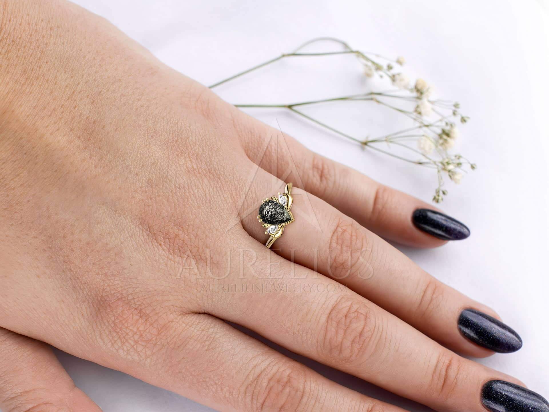 Pear Cut Rutilated Quartz Engagement Ring – Caspia