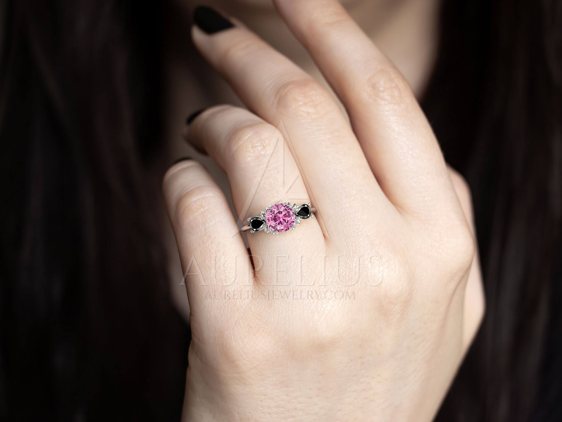 Round Moissanite Engagement Ring with Roses – Ophelia