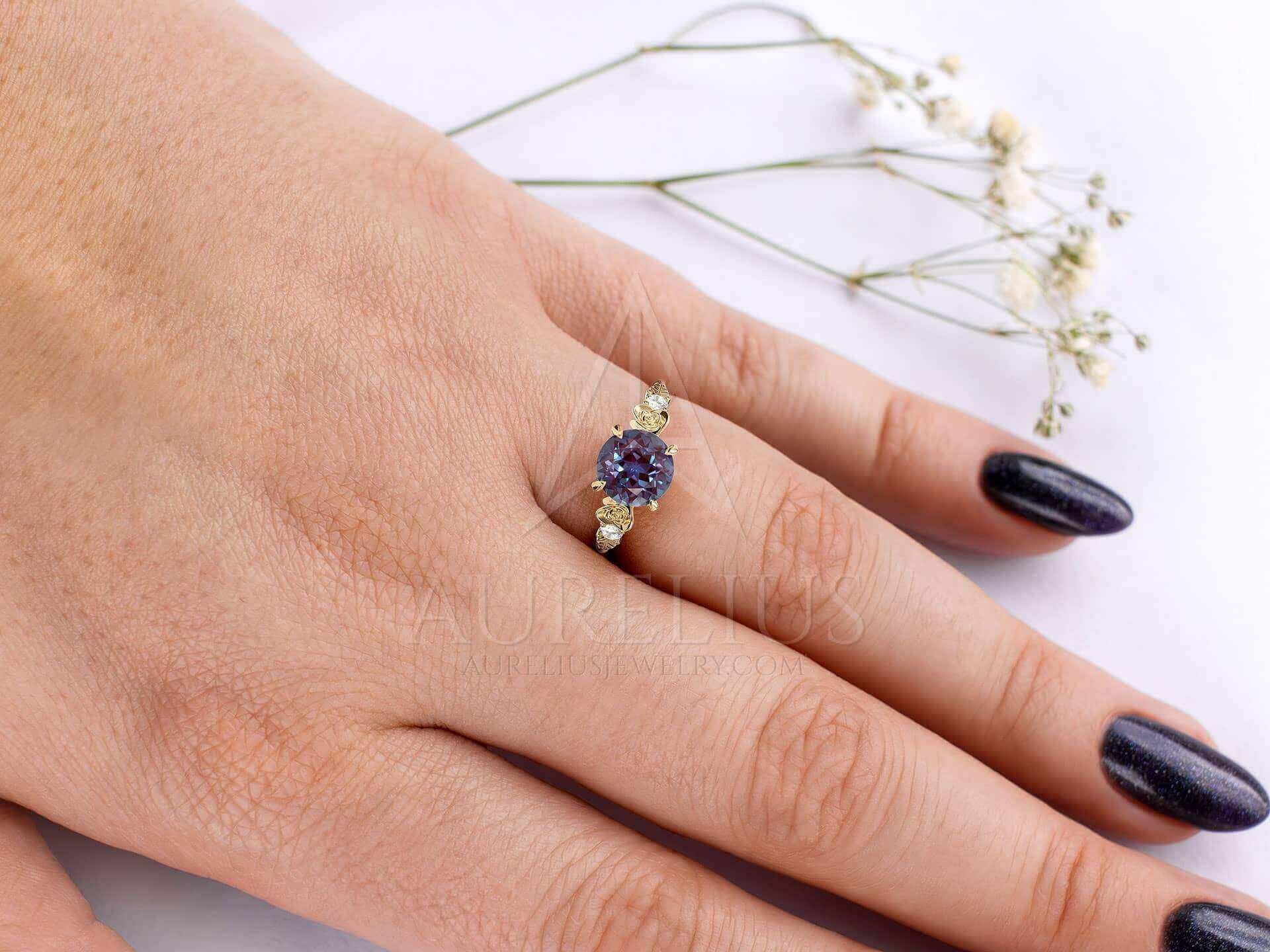 Golden Rose Engagement Ring with Round Alexandrite – June