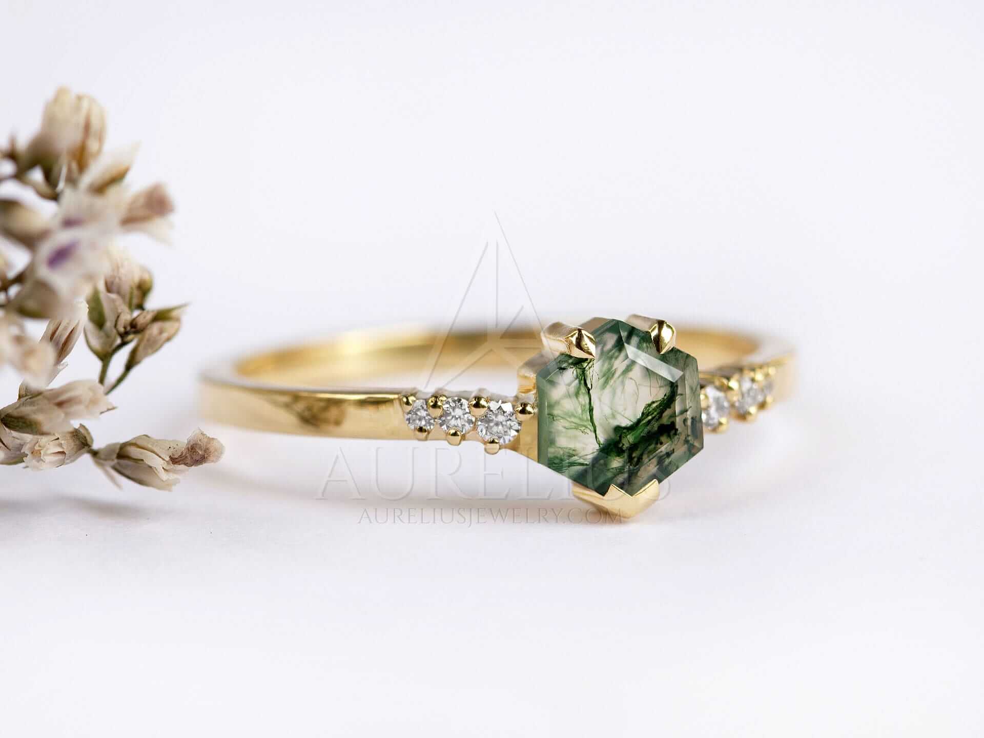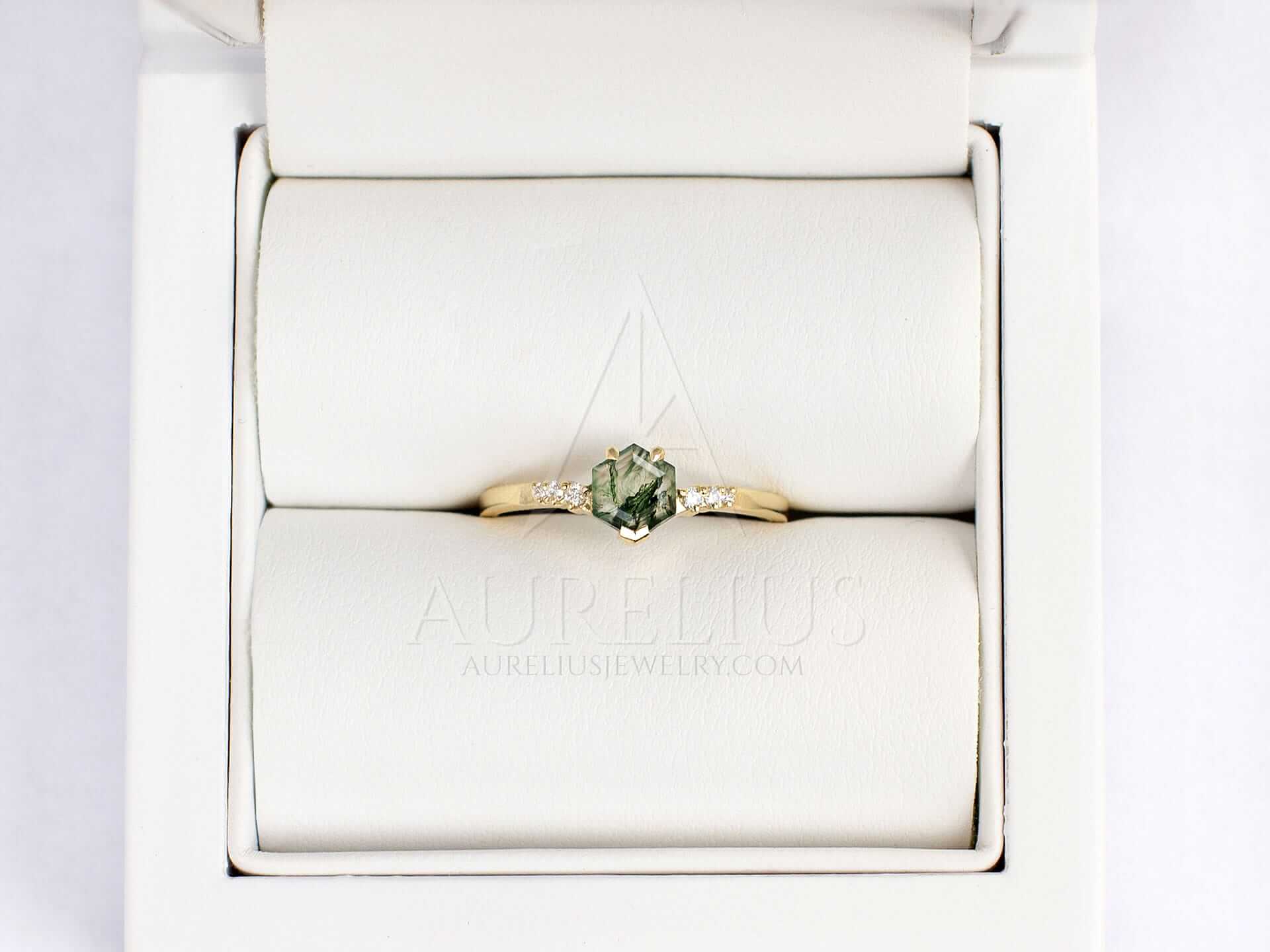 My Fiancé proposed to me with this beautiful moss agate ring and I now get to wear it for the rest of my life. The colour of the moss agate is gorgeous and the design is so unique.